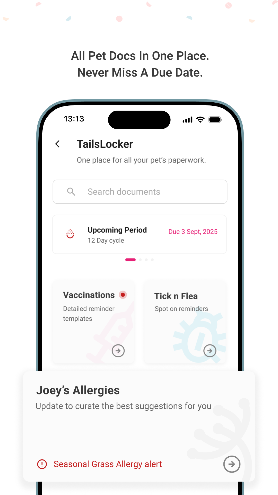 Your Pet’s vault that secures all his/her important documents and provides easy access to them anytime anywhere. Doesn’t let you forget the important dates like vaccination, deworming and others in his/her life.